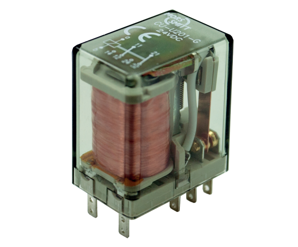 CU-G relays, 2 C/O, 6A, DC coil Heavy duty miniature power relays for demanding applications, switching of AC&DC voltages, resistive and/or inductive loads. Plug in (CU) or PCB (CP) Miniature power relay 2 C/O contacts DC coil Coil voltages 5...93VDC Flash barriers Cadmium free contacts Equipped with keying